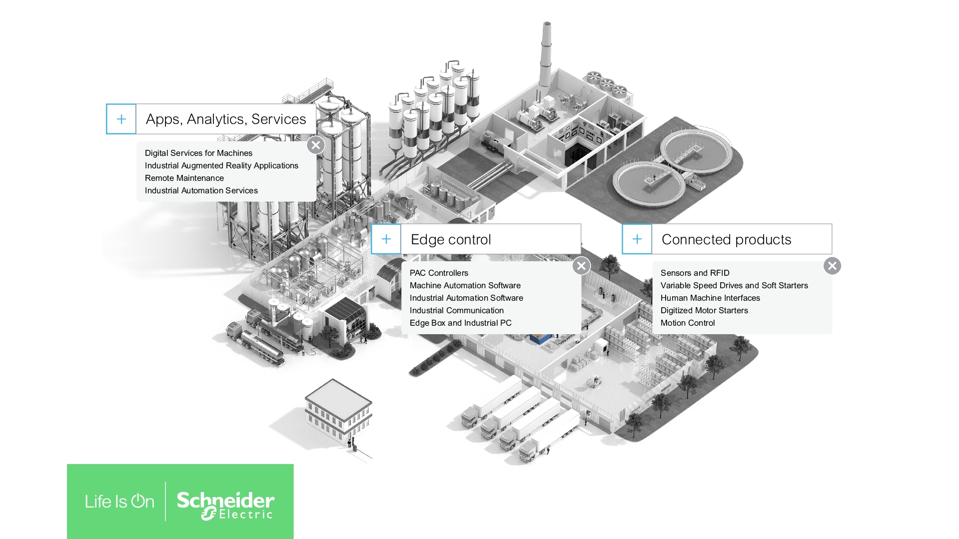 Ofrecemos soluciones basadas en la arquitectura y la plataforma EcoStruxure de Schneider Electric que le permiten aprovechar las ventajas del IIOT y le ayudan a acelerar su transformación digital.